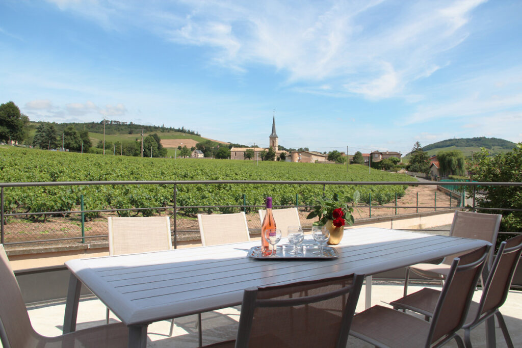 Vue à 180° sur les vignes du Beaujolais et sur le Mont Brouilly