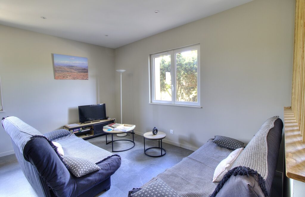 Besoin de plus de place ? Pas de soucis ! Les 2 canapés du salon se transforment en lits et la capacité de couchage passe à 11 personnes pour 1 ou 2 nuits.